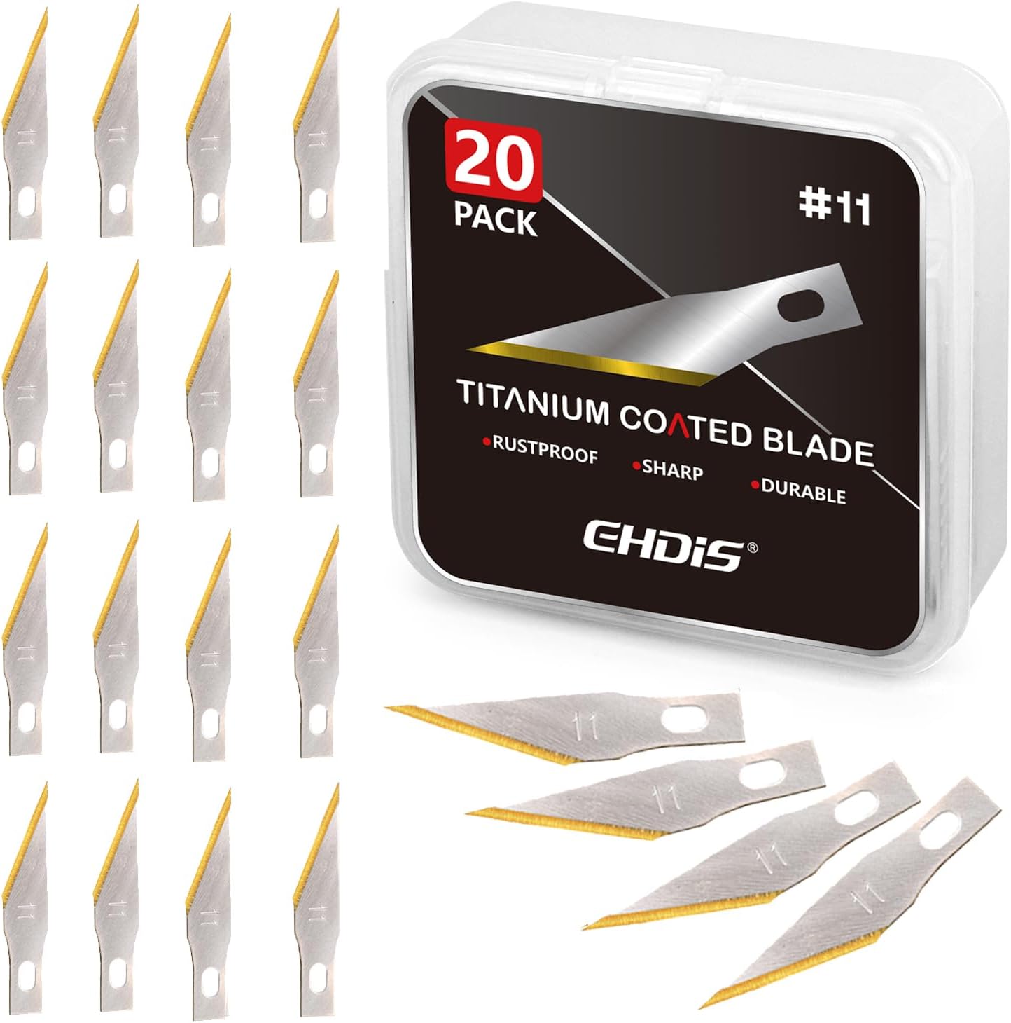 EHDIS Precision Craft Hobby Knife Blades # 11 Titanium Coated Blade Refill Hobby Art Blades Cutting Tool with Storage Case for Craft, Hobby, Scrapbooking, Stencil-20 Pack (Pack of 20)